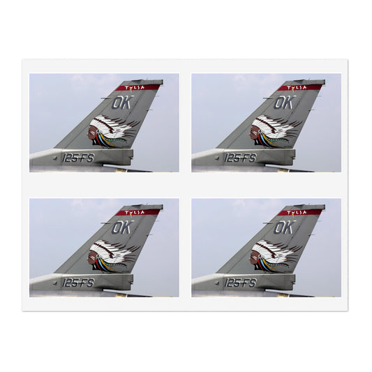 The tail flash of a F-16 Fighting Falcon aircraft from the 125th Fighter Squadron (FS), 138th Fighter Wing (FW), Oklahoma (OK), Air National Guard (ANG) Laminated UV Protective Vinyl Stickers