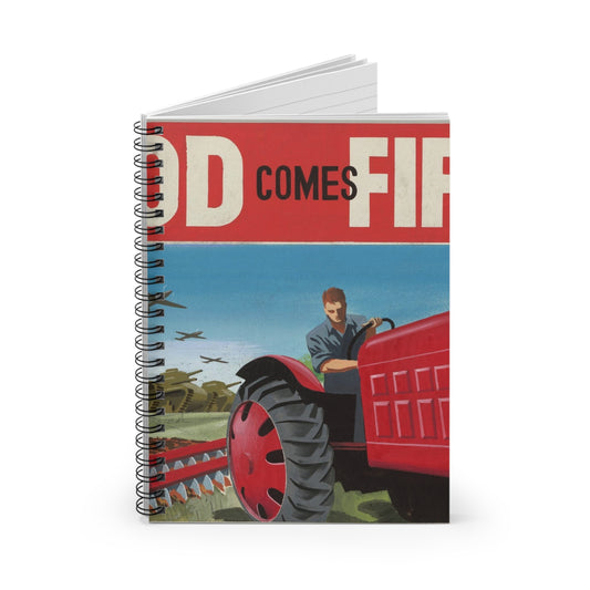 FOOD Comes FIRST - Public domain propaganda poster Spiral Bound Ruled Notebook with Printed Cover