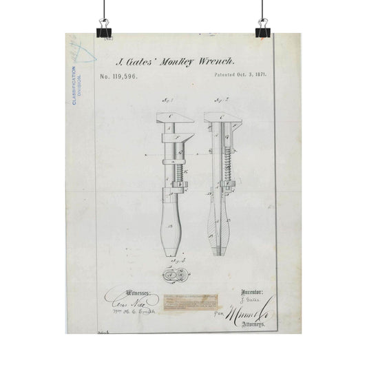 Patent Drawing of Engine - for J. Gates' Monkey Wrench Public domain image High Quality Matte Wall Art Poster for Home, Office, Classroom