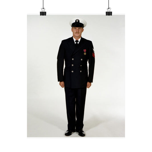 Uniform: Full dress blue, Navy enlisted men, ranks E-1 through E-6 High Quality Matte Wall Art Poster for Home, Office, Classroom