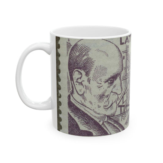 Frimärke ur Gösta Bodmans filatelistiska motivsamling, påbörjad 1950.Frimärke från Lettland, 1930. Motiv av byggnadsarbetare för ett monument över författare Rainis. Beautiful Novelty Ceramic Coffee Mug 11oz