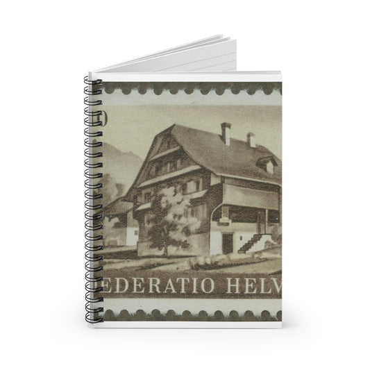 Frimärke ur Gösta Bodmans filatelistiska motivsamling, påbörjad 1950.Frimärke från Schweiz, 1949. Motiv av typiskt hur i Luzerne. "Serie till förmån för ungdomens yrkesutbildning". Spiral Bound Ruled Notebook with Printed Cover