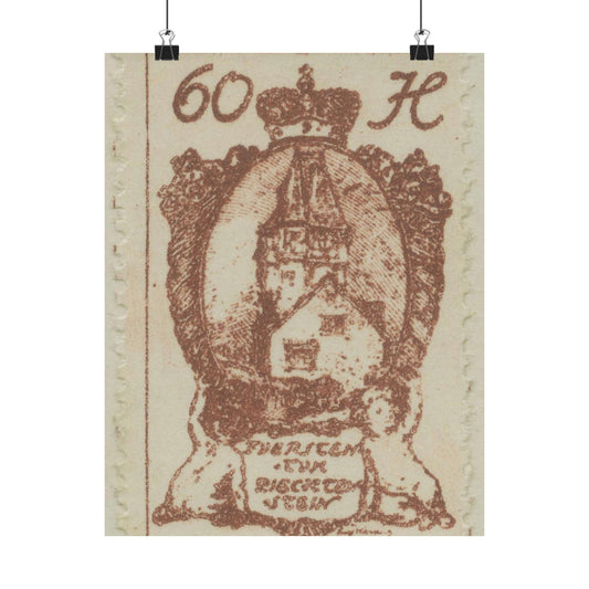 Frimärke ur Gösta Bodmans filatelistiska motivsamling, påbörjad 1950.Frimärke från Liechtenstein, 1920. Motiv av Röda Tornet i Vaduz. High Quality Matte Wall Art Poster for Home, Office, Classroom