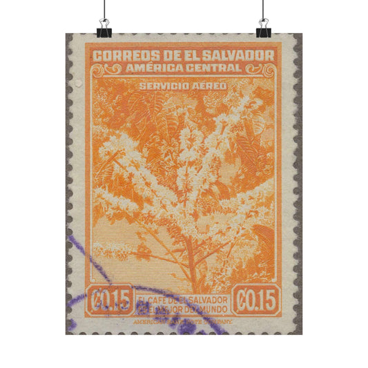 Frimärke ur Gösta Bodmans filatelistiska motivsamling, påbörjad 1950.Frimärke från Salvador, 1940. Motiv av kaffeplanta med blommor. High Quality Matte Wall Art Poster for Home, Office, Classroom