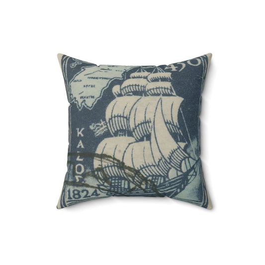 Frimärke ur Gösta Bodmans filatelistiska motivsamling, påbörjad 1950.Frimärke från Grekland, 1947. Motiv av karta över Kassos. Segelfartyg 1824. "Minne om Duodeca Öarnas återanslutning till Grekland. Decorative Accent Square Pillow