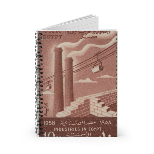 Frimärke ur Gösta Bodmans filatelistiska motivsamling, påbörjad 1950.Frimärke från Förenade Arabstaterna, 1958. Motiv av cement- och byggindustri i Egypten. Spiral Bound Ruled Notebook with Printed Cover