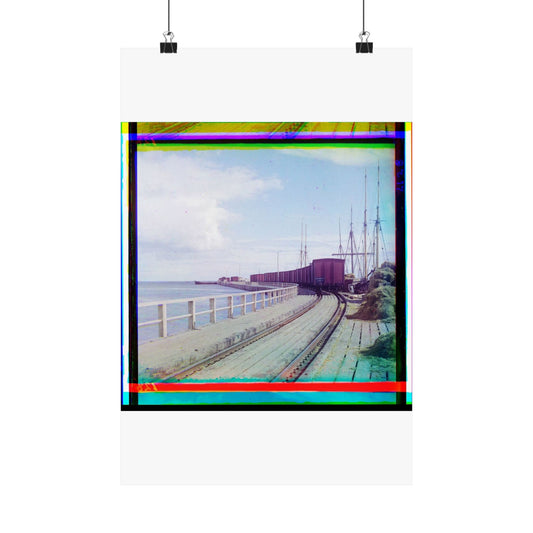 Sorochya Bay. Railroad dam in the Soroka inlet. Arkhangelsk Province, Russia. High Quality Matte Wall Art Poster for Home, Office, Classroom