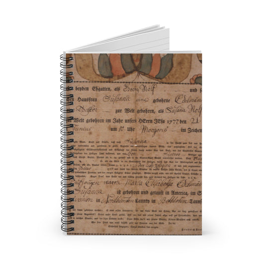 Frakturs illumination - George Nolf, Pennsylvania Spiral Bound Ruled Notebook with Printed Cover