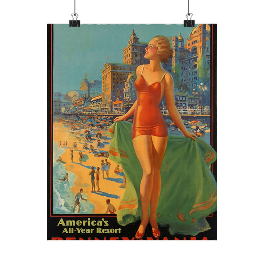 Atlantic City— America’s All-Year Resort, Pennsylvania Railroad, painting by Edward Mason Eggleston High Quality Matte Wall Art Poster for Home, Office, Classroom
