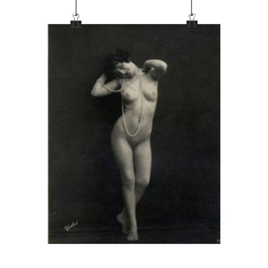 Erotic Art: WALERY - An old photo of a naked woman with pearls High Quality Matte Wall Art Poster for Home, Office, Classroom