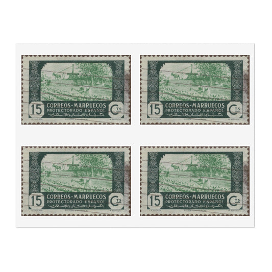 Frimärke ur Gösta Bodmans filatelistiska motivsamling, påbörjad 1950.Frimärke från Spanska Marocko, 1944. Motiv av planteringsarbete , köksträdgård. Laminated UV Protective Vinyl Stickers