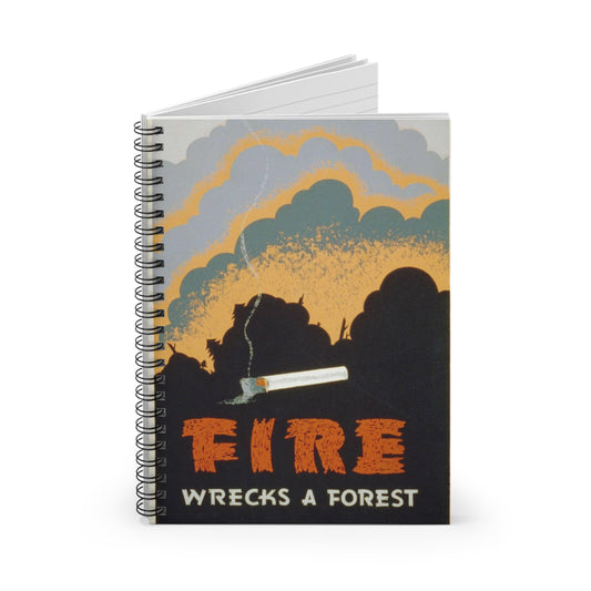 Fire wrecks a forest, Art Deco Poster Spiral Bound Ruled Notebook with Printed Cover