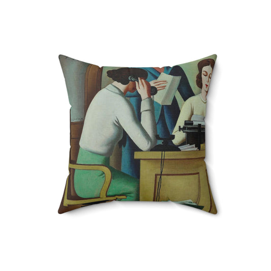 Close up of oil painting "Contemporary Justice and Woman," first floor lobby, Department of Justice, Washington, D.C. Decorative Accent Square Pillow