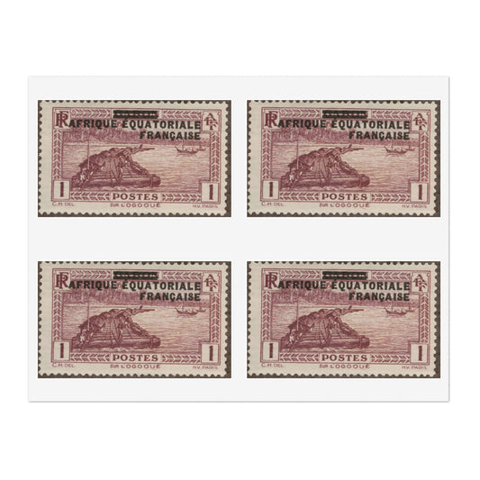 Frimärke ur Gösta Bodmans filatelistiska motivsamling, påbörjad 1950.Frimärke från Franska Ekvatorialafrika, 1936. Motiv av verkestransport vid floden L'Ogooué, Franska Kongo, Laminated UV Protective Vinyl Stickers