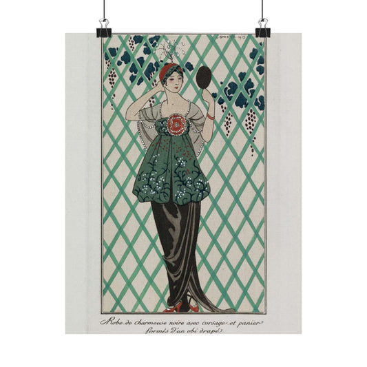 Evening gown (Robe de charmeuse noire avec corsage et panier formés d'un obi drapé) (CBL WEp 0870) High Quality Matte Wall Art Poster for Home, Office, Classroom