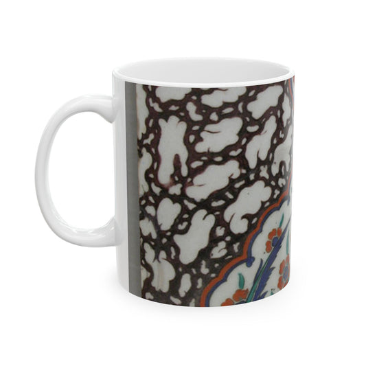 Tile with Floral Cartouche Design on Ebru (Marble Imitation Pattern) Background Beautiful Novelty Ceramic Coffee Mug 11oz