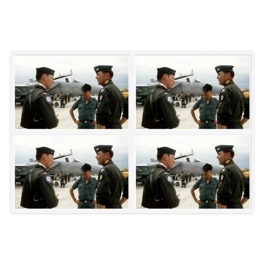 Upon his arrival, LTC Tom Barber (left), is greeted by Exercise Cope North '81-3 directors, COL George Peacock and Japanese Air SelF Defense Force COL V. Nomura Laminated UV Protective Vinyl Stickers