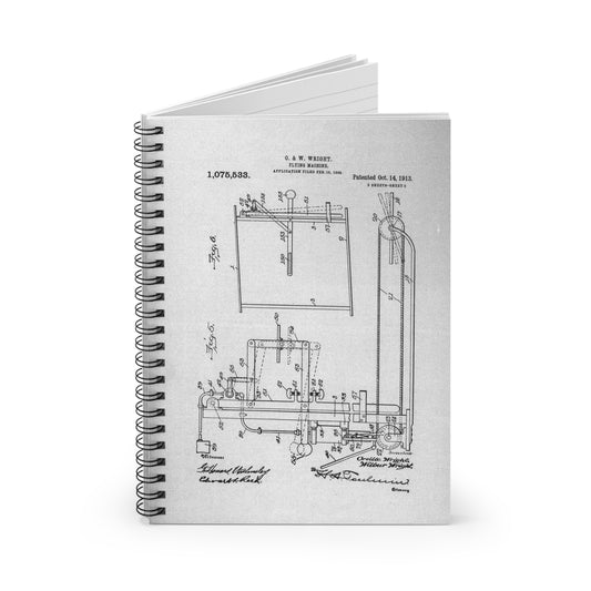 Patent drawing - Subject File: Patents--By Wright Brothers--USA--filed 10 February 1908, patented 14 October 1913 Public domain image Spiral Bound Ruled Notebook with Printed Cover