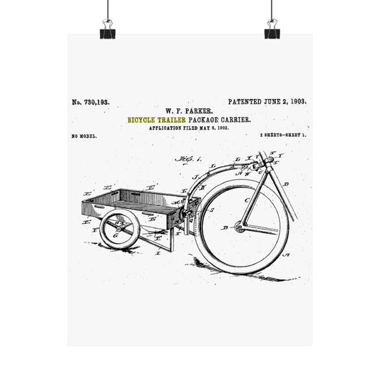 Patent Drawing of Engine - Bicycle Trailer Patent (1903) Public domain image High Quality Matte Wall Art Poster for Home, Office, Classroom