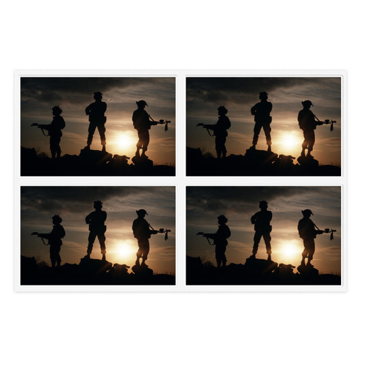 Members of the 63rd Security Police Squadron are silhouetted by the setting sun during the combat-readiness Exercise VOLANT SCORPION 87 Laminated UV Protective Vinyl Stickers