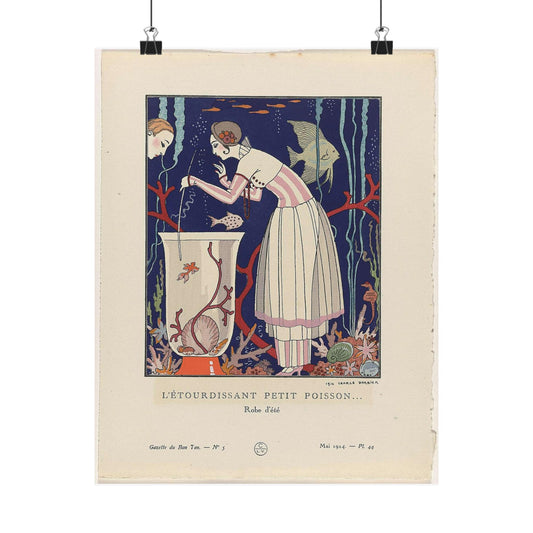 Gazette du Bon Ton, 1914 - No. 5, Pl. 44: L'étourdissant petit poisson (...) / Robe d'été High Quality Matte Wall Art Poster for Home, Office, Classroom