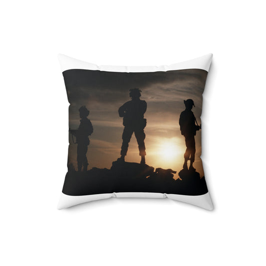 Members of the 63rd Security Police Squadron are silhouetted by the setting sun during the combat-readiness Exercise VOLANT SCORPION 87 Decorative Accent Square Pillow