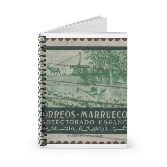 Frimärke ur Gösta Bodmans filatelistiska motivsamling, påbörjad 1950.Frimärke från Spanska Marocko, 1944. Motiv av planteringsarbete , köksträdgård. Spiral Bound Ruled Notebook with Printed Cover