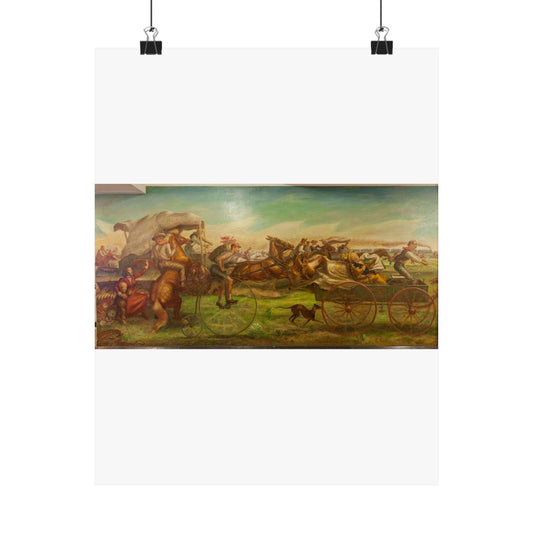 Mural: The Oklahoma Land Rush, April 22, 1889, by John Steuart Curry at the Department of Interior, Washington, D.C. High Quality Matte Wall Art Poster for Home, Office, Classroom
