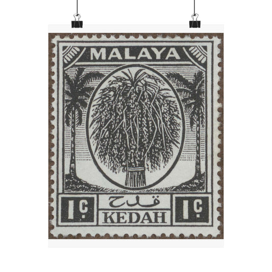 Frimärke ur Gösta Bodmans filatelistiska motivsamling, påbörjad 1950.Frimärke från Kedah, 1912. Motiv av palmer och risknippa. High Quality Matte Wall Art Poster for Home, Office, Classroom