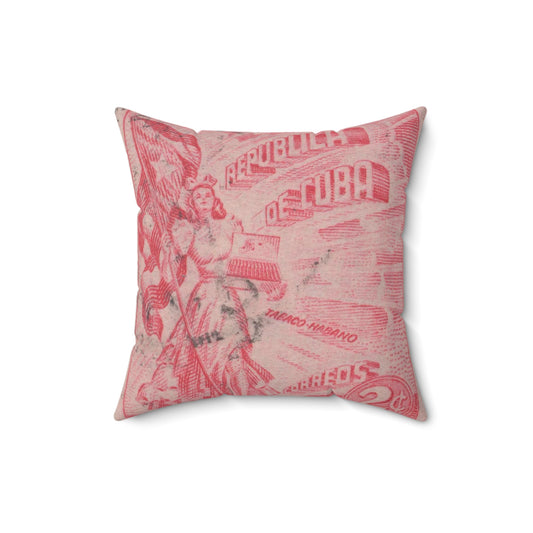 Frimärke ur Gösta Bodmans filatelistiska motivsamling, påbörjad 1950.Frimärke från Cuba, 1948. Motiv av kvinnosymbol för friheten med cigrarrlåda och flagga. Decorative Accent Square Pillow