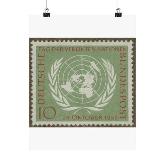 Frimärke ur Gösta Bodmans filatelistiska motivsamling, påbörjad 1950.Frimärke från Västtyskland, 1955. Motiv av världskarta. "F. N. :s dag 24 oktober 1955". High Quality Matte Wall Art Poster for Home, Office, Classroom