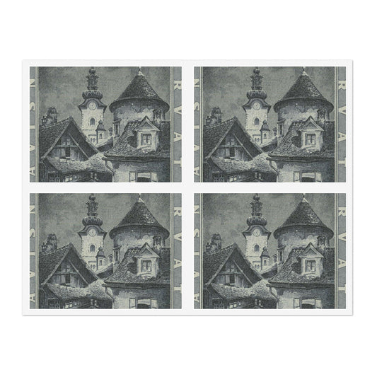 Frimärke ur Gösta Bodmans filatelistiska motivsamling, påbörjad 1950.Frimärke från Kroatien, 1943. Motiv av kyrkan St. Marie och Cistercienserklostret år 1950. "Till Filateliutställningen i Zagreb 1943". Laminated UV Protective Vinyl Stickers