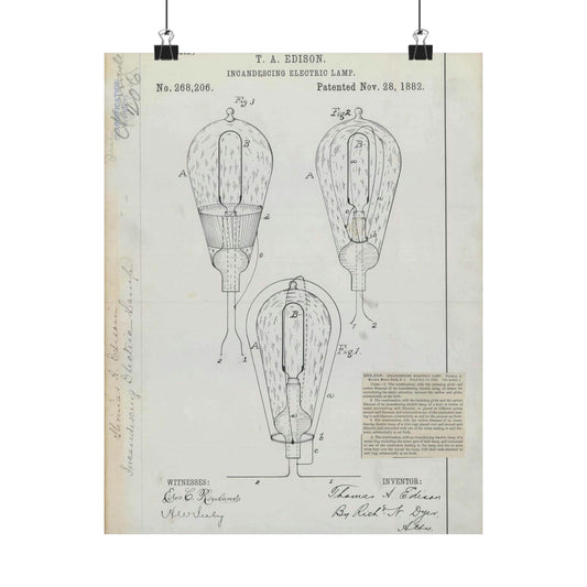 Patent drawing - for T. A. Edison's Incandescing Electric Lamp Public domain image High Quality Matte Wall Art Poster for Home, Office, Classroom