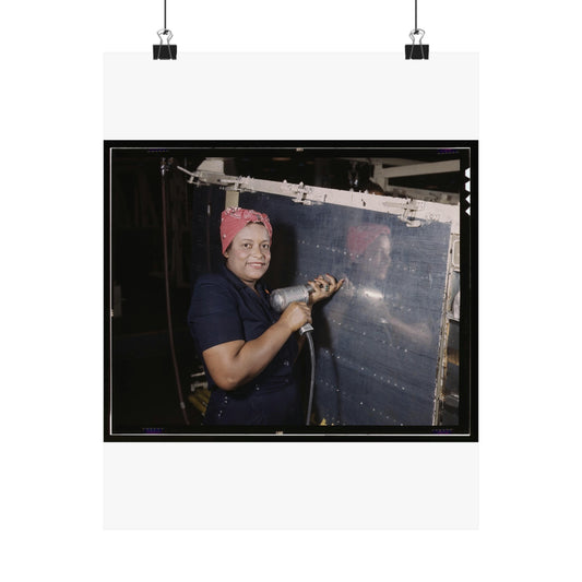 Operating a hand drill at Vultee-Nashville, woman is working on a "Vengeance" dive bomber, Tennessee High Quality Matte Wall Art Poster for Home, Office, Classroom