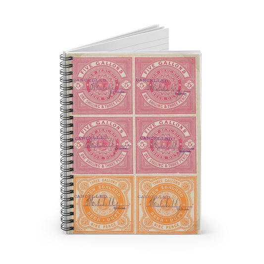 Beer duty stamps, five gallons and three gallons (cancelled) Spiral Bound Ruled Notebook with Printed Cover