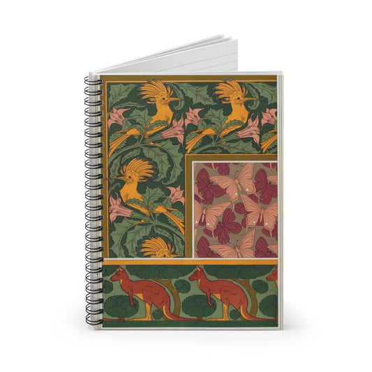 Huppes et stramoine, bordure. Papillons, étoffe de soie. Kangourou et arbres, bordure. Spiral Bound Ruled Notebook with Printed Cover