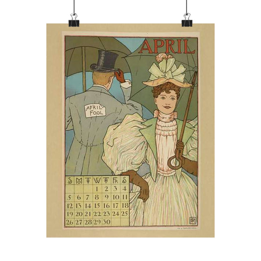 April, Art Nouveau Poster - Art nouveau public domain poster High Quality Matte Wall Art Poster for Home, Office, Classroom