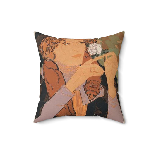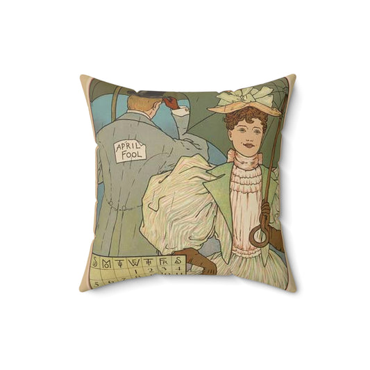 April, Art Nouveau Poster - Art nouveau public domain poster Decorative Accent Square Pillow