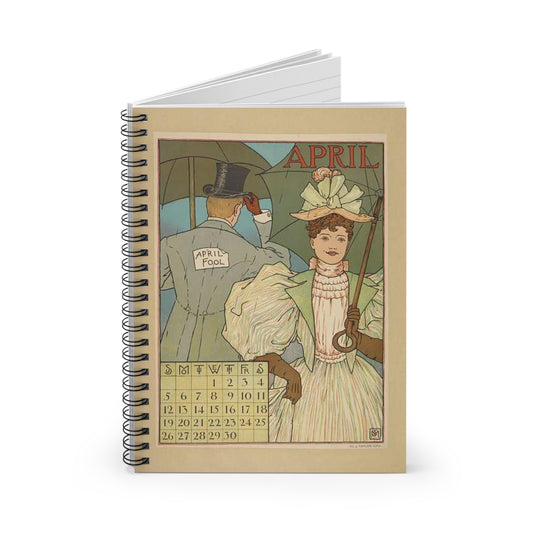April, Art Nouveau Poster - Art nouveau public domain poster Spiral Bound Ruled Notebook with Printed Cover