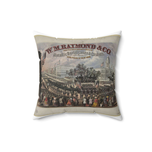 W.M. Raymond & Co. Proprietors & manufacturers of metallic burial cases & caskets. 348 Pearl St., New York / Hatch & Co. 111 Broadway N.Y. Decorative Accent Square Pillow