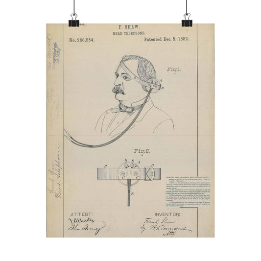 Patent drawing - for F. Shaw's Head Telephone Public domain image High Quality Matte Wall Art Poster for Home, Office, Classroom