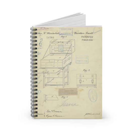 Patent Drawing of Engine - Drawing of a Travelers Trunk Public domain image Spiral Bound Ruled Notebook with Printed Cover
