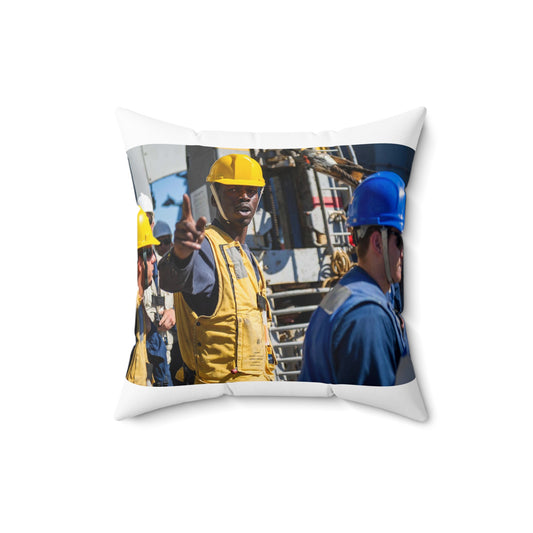 Seaman Glenrick Henry directs crew members as rig captain Decorative Accent Square Pillow