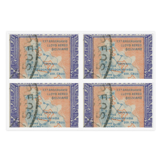 Frimärke ur Gösta Bodmans filatelistiska motivsamling, påbörjad 1950.Frimärke från Bolivia, 1945. Motiv av karta över Bolivias flyglinjer. "20-årsminne av flygbolaget "Lloyd Aéreo Bolivianos" grundande 1925-1945". Laminated UV Protective Vinyl Stickers
