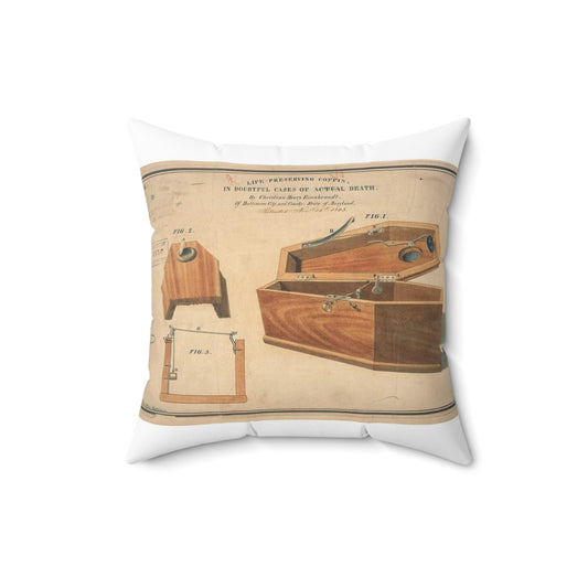 Patent drawing - Drawing for a Life - Preserving Coffin Public domain image Decorative Accent Square Pillow