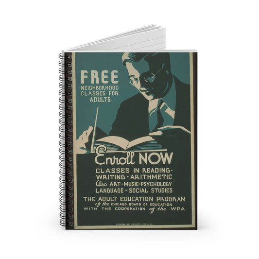 Free neighborhood classes for adults Enroll now : Classes in reading - writing - arithmetic - also art - music - psychology - language - social studies. Spiral Bound Ruled Notebook with Printed Cover