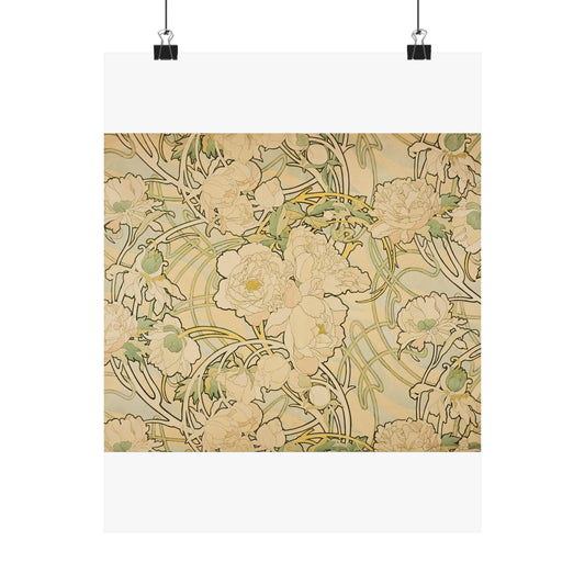 Alphonse Mucha - Peonies - Google Art Project High Quality Matte Wall Art Poster for Home, Office, Classroom