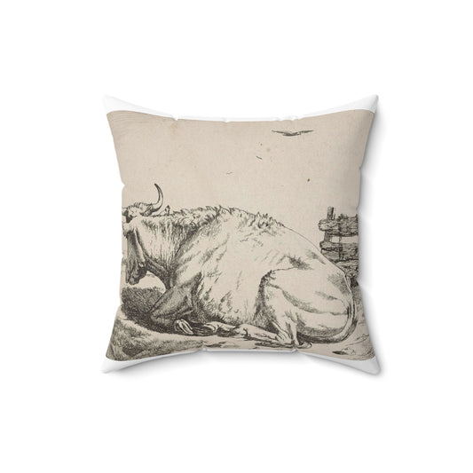 Another series of cows. Plate 3: A recumbent cow, in profile to left. Decorative Accent Square Pillow