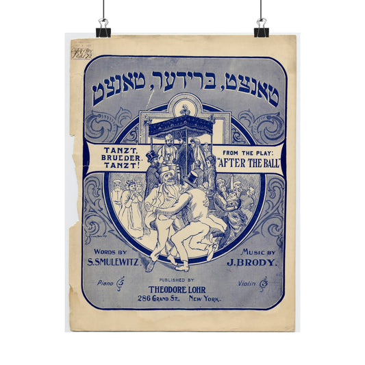 Tanzt brueder, tanzt!, Yiddish-American song High Quality Matte Wall Art Poster for Home, Office, Classroom