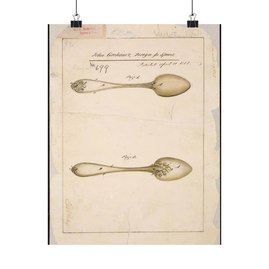 Patent drawing - Drawing of Design for Spoons Public domain image High Quality Matte Wall Art Poster for Home, Office, Classroom